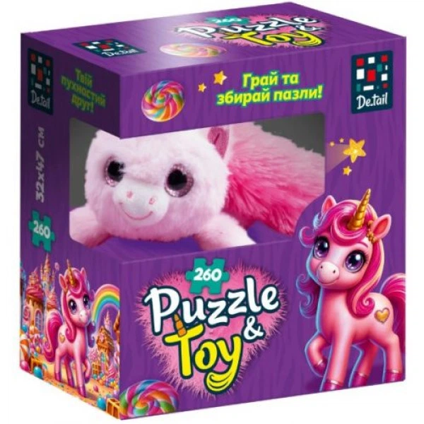 Пазли з м'якою іграшкою "De.tail. Рожевий єдиноріг" 260 деталей