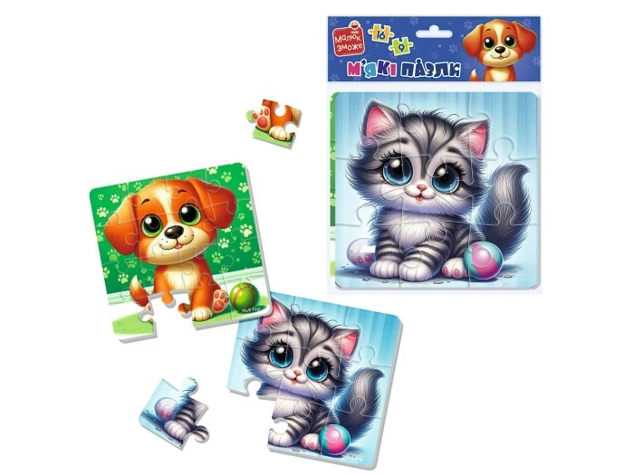 Пазли м`які Котик та песик, Vladi Toys, 2 пазли 9 і 16 ел., VT1102-37