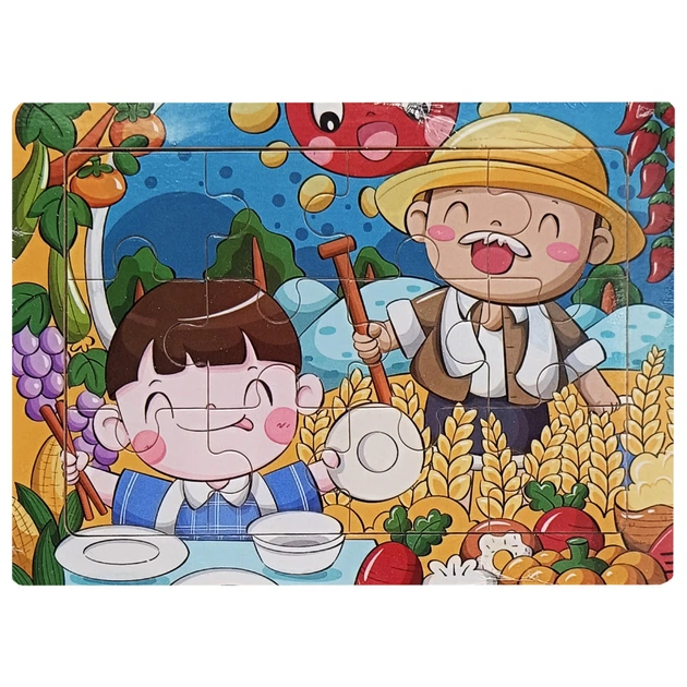 Дитячий дерев'яний пазл-вкладиш "На дачі у діда" MD 1354-1, 12 елементів 15 х 11 х 0,4 см