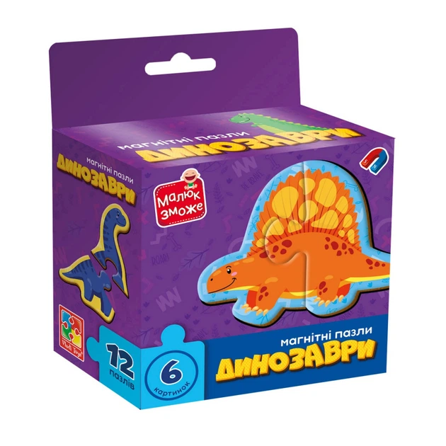 Дитячі магнітні пазли "Динозаври" Vladi Toys VT1733-01, 6 картинок