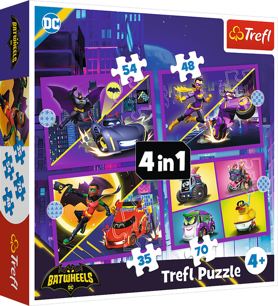 Пазли 4 in 1 Trefl DC Batwheels Зустрічайте 35+48+54+70 елементів (5900511346589)