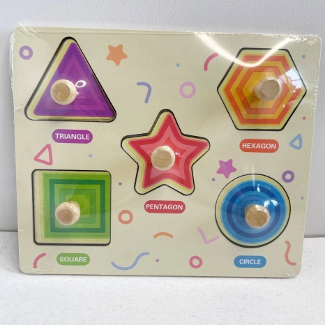 Дерев'яні пазли вкладиші С 73250 Геометричні фігурки, з малюнком під вкладишем