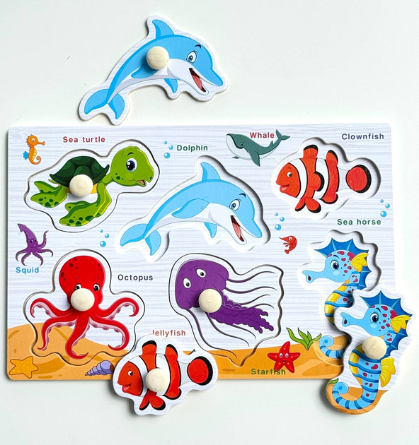 Дерев'яні пазли вкладиші С 73239 Морські Мешканці, під вкладишем є малюнок