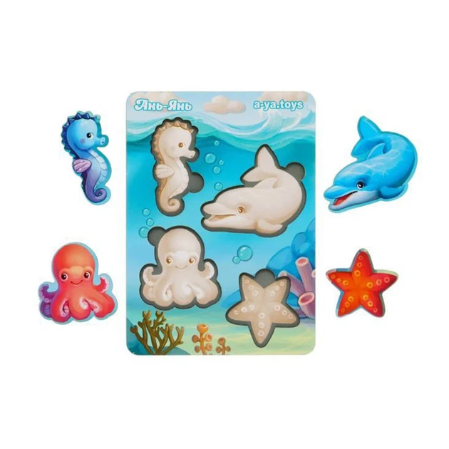 Дерев'яний пазл "Морські тварини-1" Ubumblebees (ПСФ055) PSF055 фон з підказкою