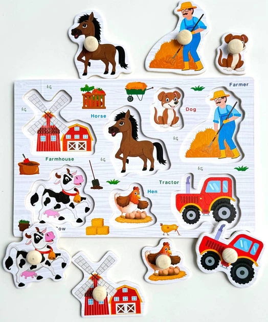 Дерев'яні пазли - вкладиші Весела Ферма, С53972 під вкладишем є малюнок