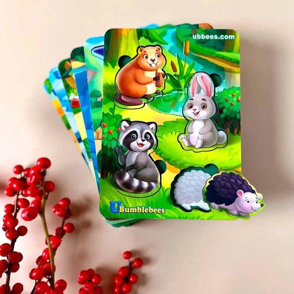 Дерев'яний пазл-вкладиш "Лісові тварини-1" Ubumblebees (ПСФ057) з фоном-підказкою, гра 2+