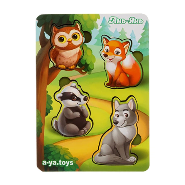 Дерев'яний пазл-вкладиш "Лісові тварини-2" Ubumblebees (ПСФ058) PSF058 фон із підказкою
