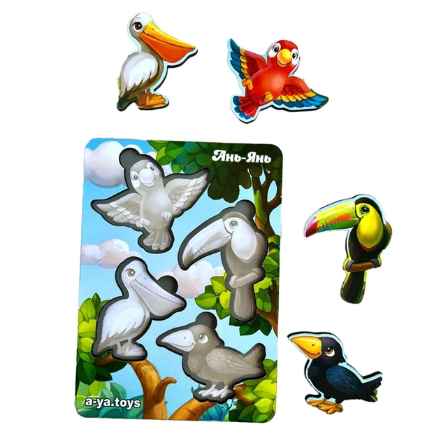 Дерев'яний пазл-вкладиш "Птахи" Ubumblebees (ПСФ062) PSF062 фон із підказкою