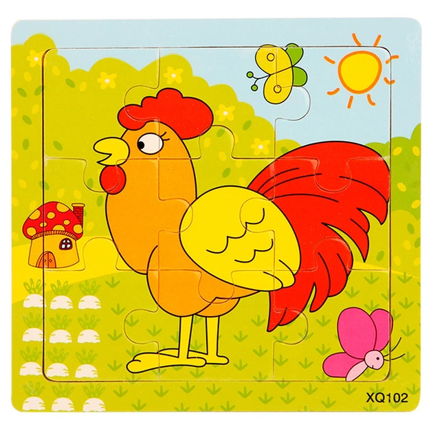 Рамка-пазл дерев'яний з 9 елементів 15x15 см Півень