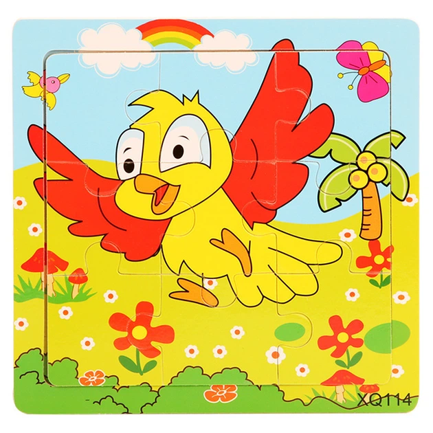 Рамка-пазл дерев'яний з 9 елементів 15x15 см Пташка