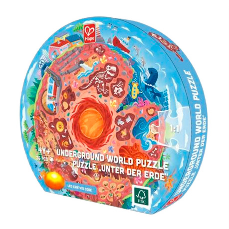 Пазл круглий Hape Підземний світ - пориньте в захопливий урок природознавства з гігантською головоломкою! Ця велика головоломка для підлоги, що складається з 36 деталей, містить інформацію про те, що міститься під земною корою. Особливості: завдяки світлодіодному сонцю, що світиться, і блискучим барвистим деталям дітям сподобається збирати цю головоломку знову і знову; є