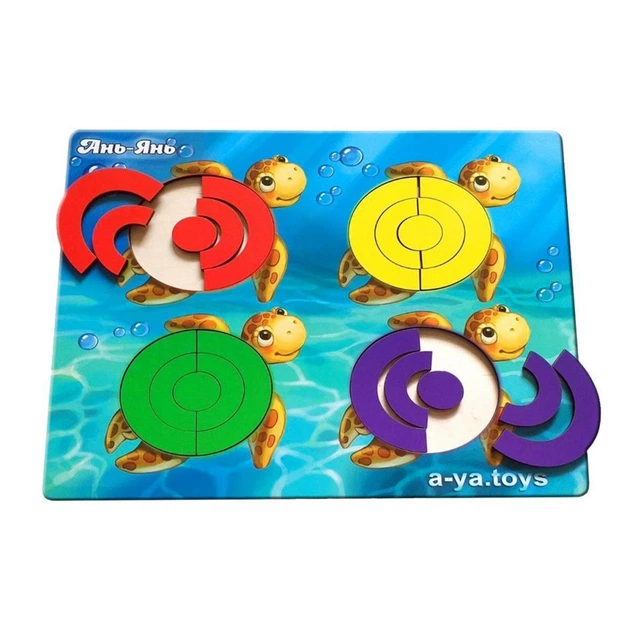 Дерев'яний пазл-сортер "Черепашки - кольори" Ubumblebees (ПСД138) PSD138 із завданнями