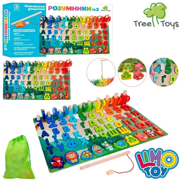Дерев'яна гра сортер LimoToy MD 2771-UA 5 в 1 Монтессорі з магнітною риболовлею українською мовою