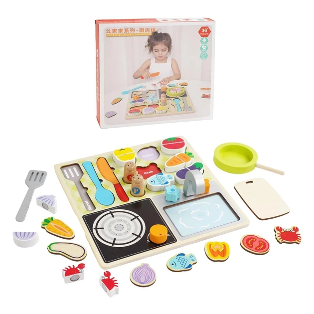 Дерев’яний сортер JIA YU TOY Кухня, 22 елементи, набір продуктів, елементи на липучках, безпечний ніж, дошка для нарізання (