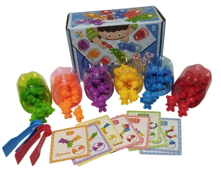 Логічний сортер на кольори з фігурками Ведмедиків, щипці, 92 деталі, 6 кольорів, картки із завданнями