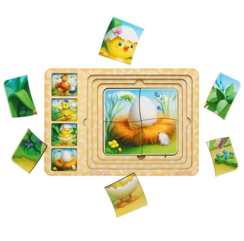 Сортер-пазл Етапи розвитку курочки Ubee дерев'яний чотиришаровий пазл для дітей розвиваюча іграшка 31 деталь (539643)