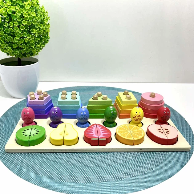 Дошка логічна WToys сортер геометричні фігури фрукти магнітна гра рибалка (68379)