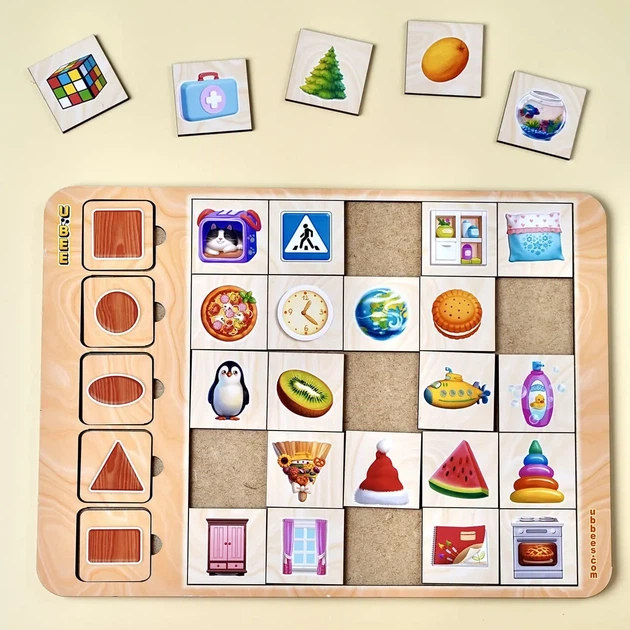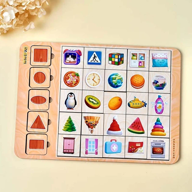 Сортер «Асоціації — геометричні фігури» (розвиваюча гра для дітей 2–5 років, логіка, форми, мислення)
