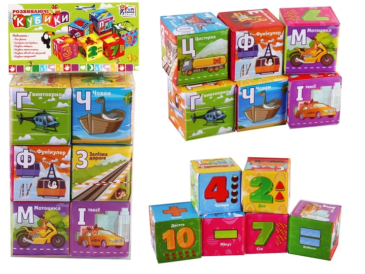Кубики "Транспорт", 6 штук, м'які, водонепроникна тканина, літери
