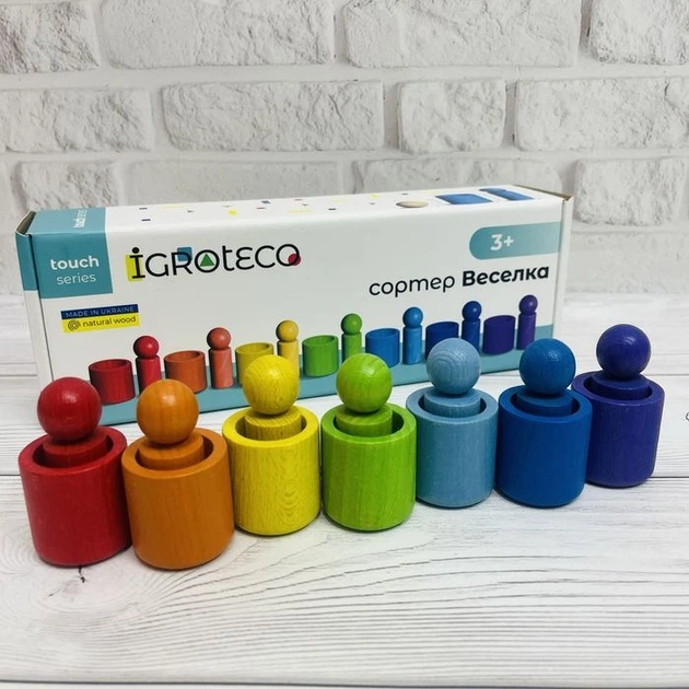 Дерев'яний сортер "Райдуга" Igroteco 900712, Набір стаканчиків та фігурок
