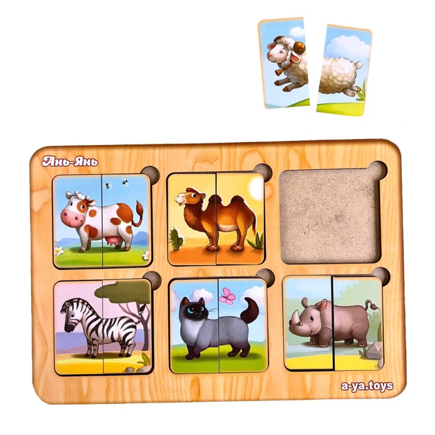 Дерев'яний пазл-сортер "Дивовижні звірятка" Ubumblebees (ПСФ090) PSF090, 6 картинок тварин