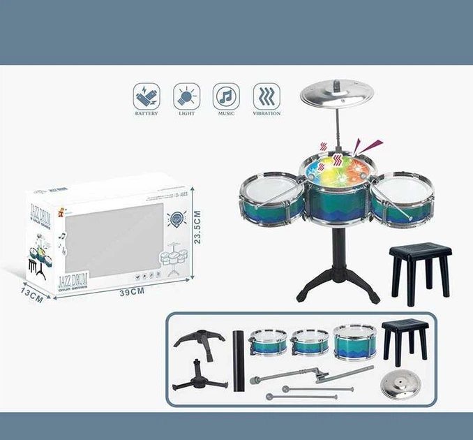 Дитяча Барабанна установка зі стільчиком Jazz Drum Set Синій