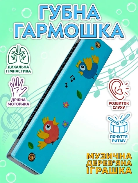 Дитячий музичний інструмент Губна гармошка Пташки (блакитний)