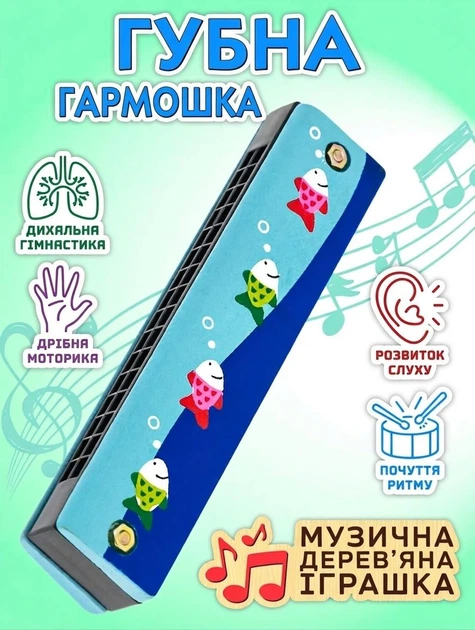 Дитячий музичний інструмент Губна гармошка Рибки (блакитний)
