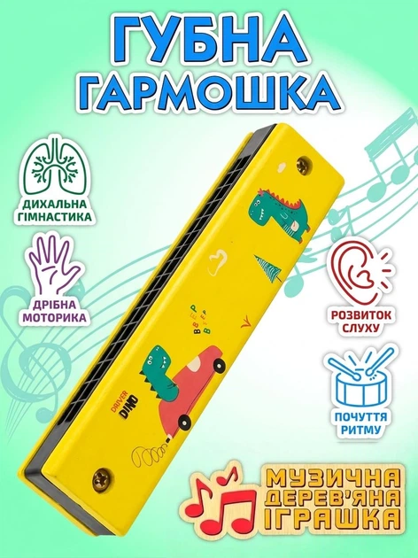 Дитячий музичний інструмент Губна гармошка Діно (жовтий)