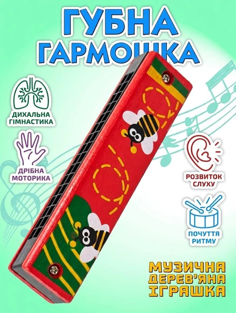 Дитячий музичний інструмент Губна гармошка Бджілки (червоний)