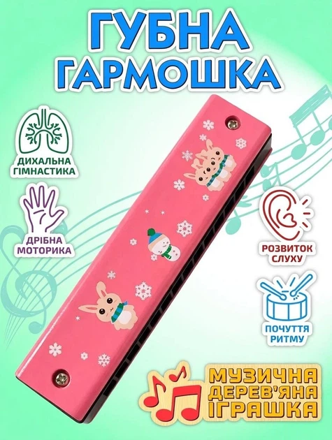 Дитячий музичний інструмент Губна гармошка Зайчики (рожевий)