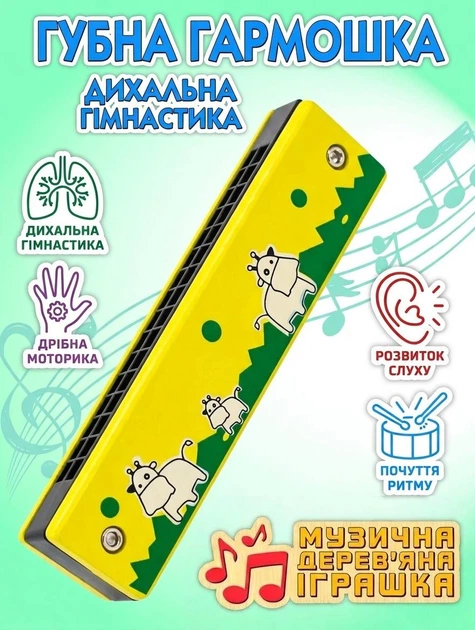 Дитячий музичний інструмент Губна гармошка Корівки (жовтий)