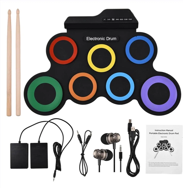 Різнокольорова електронна барабанна установка KidsDrum для дітей з аксесуарами
