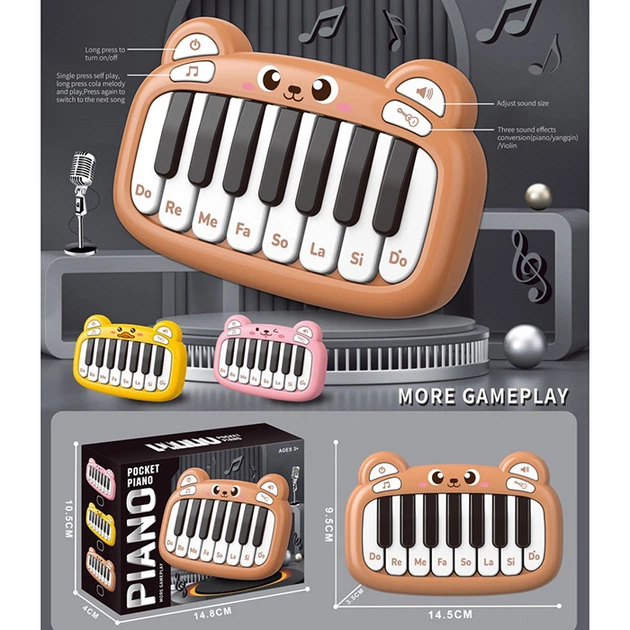 Дитяче піаніно "Котик" Bambi 503-19 звуки тварин 15 см, музика