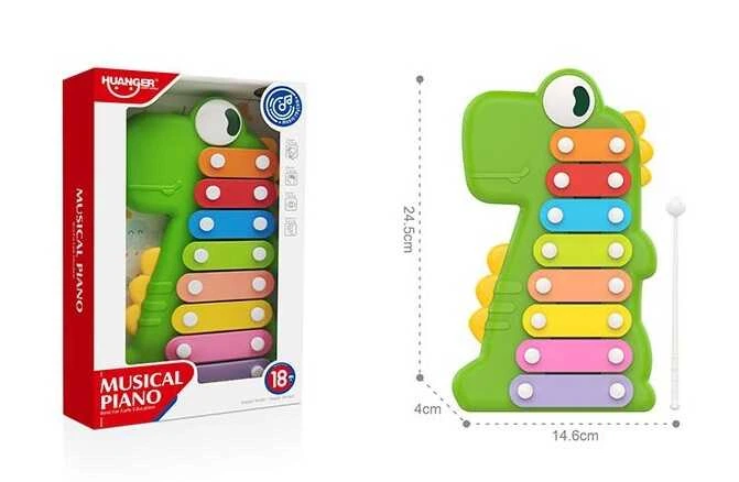 Ксилофон HE 8012 "Динозаврик", 8 металевих пластин, молоточок, в коробці