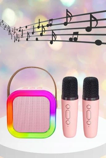 Дитяче караоке, колонка+2 мікрофона в рожевому кольорі
