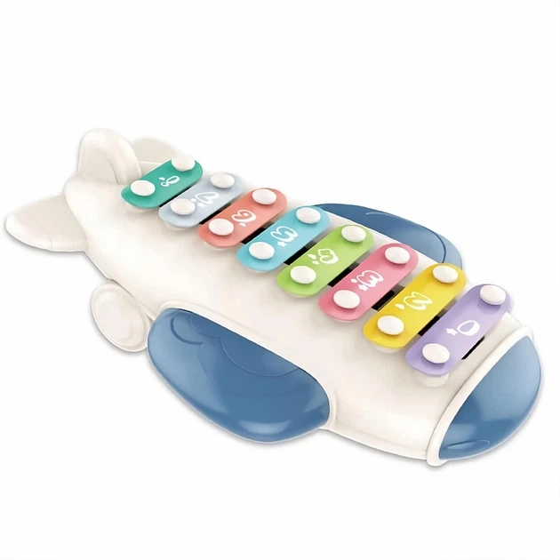 Іграшковий ксилофон 668-156-2 "Літак"- з ударними паличками, у подарунковій коробці, синій