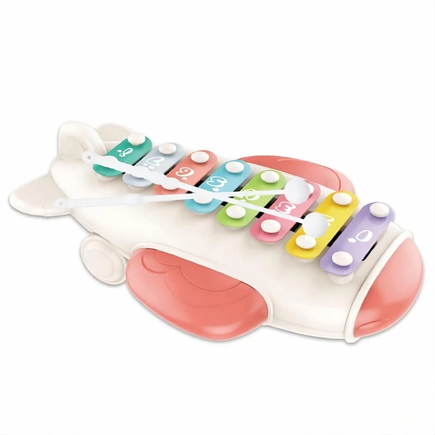 Іграшковий ксилофон 668-156-1 "Літак"- з ударними паличками, у подарунковій коробці, рожевий