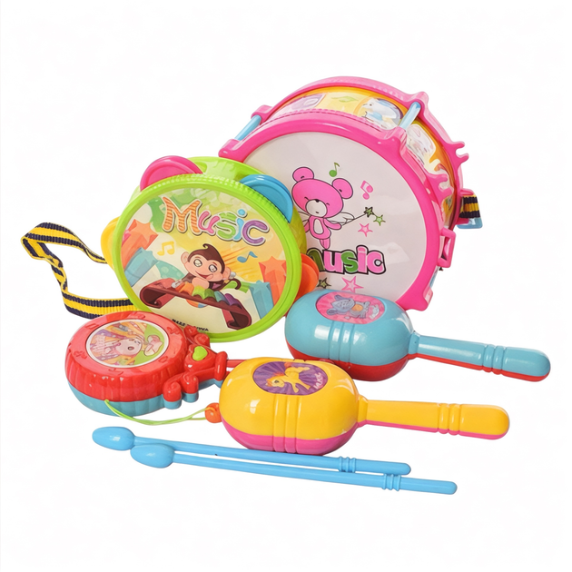Набір музичних інструментів ToyCloud 6 предметів, барабан, труба, маракаси 890-27