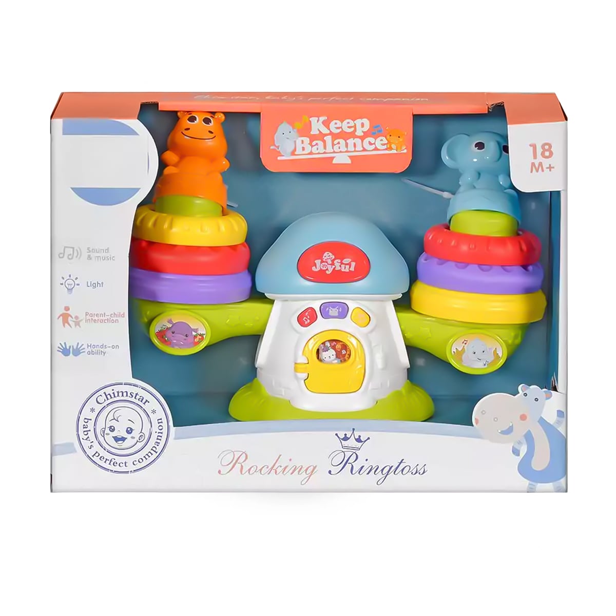 : два режими гри: натягнути й відпустити (pull-back) або активація за допомогою спеціальної кнопки на бегемотику; під час руху оленя весело хитає головою; грає мелодії, видає кумедні звуки та миготить