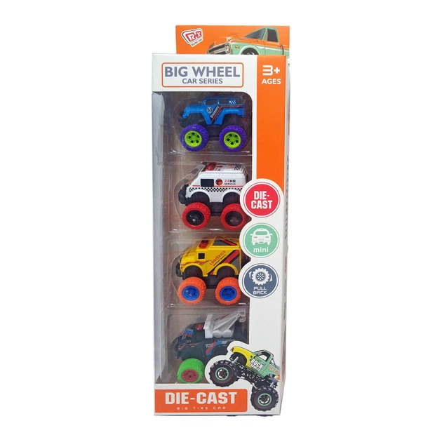 Набір іграшкових машинок JM52243, 4 машинки в наборі, коробка 9,8*5,5*32,5см. Жовто-синій