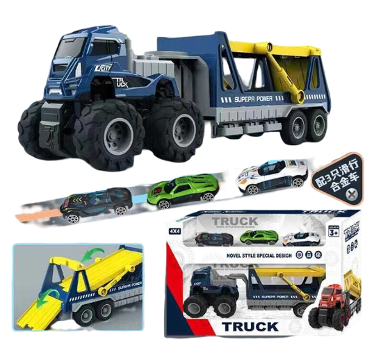 Набір іграшкових машинок jm52243, 4 машинки в наборі, коробка 9,8*5,5*32,5см. Жовто-синій