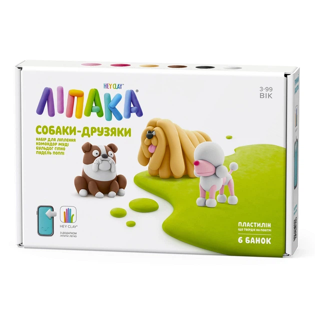 Набір пластиліну Ліпака - Собаки-друзі: Комондор Муді, Бульдог Гіпно, Пудель Поппі