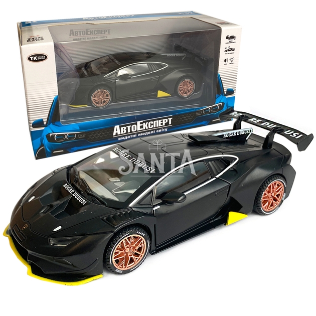 Іграшкова машинка металева Lamborghini roger dubuis (Ламборгіні) "АвтоЕксперт", чорний колір, світло, звук, інерція, відчиня
