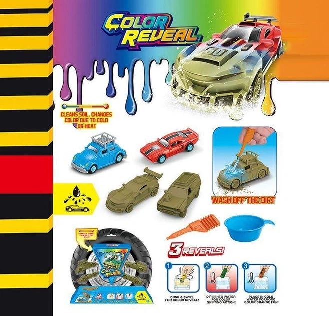 Набір машин SK-S 12 (72) 4 машинки, металопластик, змінюють колір, черпак, піпетка, на листі