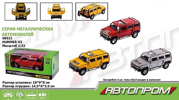 Машина метал 3 кольори, 1:32 Hummer H3 світло, звук Автопром (68321)
