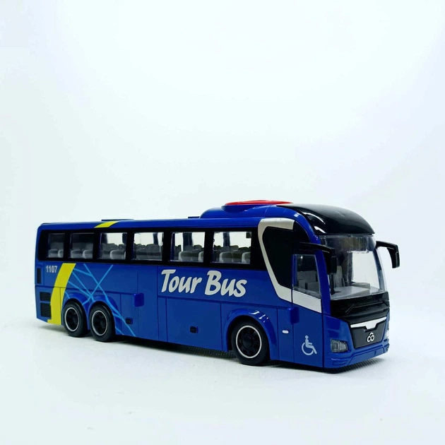 Іграшковий туристичний автобус WY1107A синій — інерційна машина зі світлом, звуком і дверцятами, 28 см