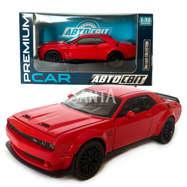 Машинка металева Dodge Challenger SRT Додж червоний звук світло відкр двері багажник капот Автомир1:32,16*7*5см (AP-1992)