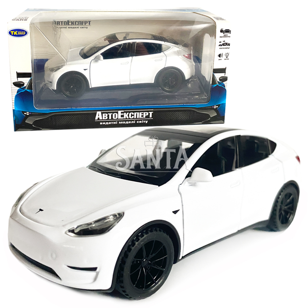 Іграшкова машинка металева Tesla Y, тесла, біла, звук, світло, інерція, відкр двері, багажник, капот, Автоексперт, 1:32, 14,
