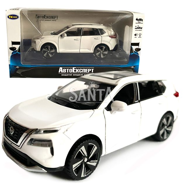 Іграшкова машинка металева Nissan X-Trail VC-Turbo 300, нісан, біла, звук, світло, інерція, відчин двері, капот, Автоексперт
